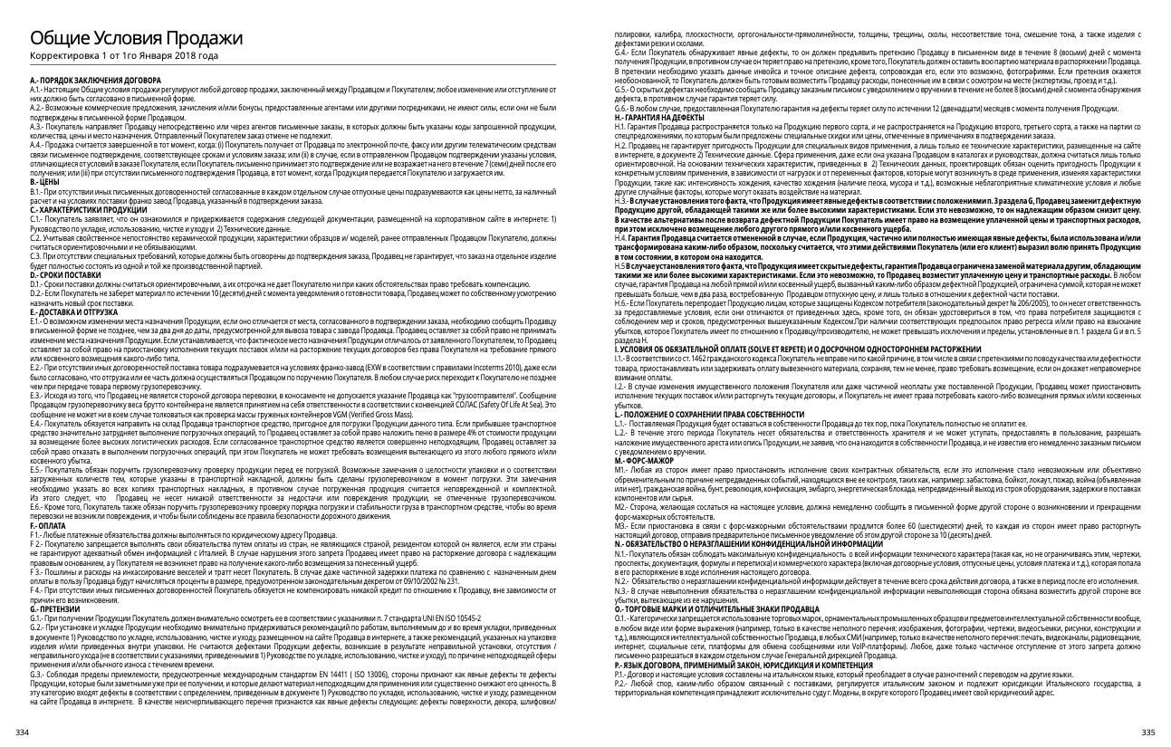 P.1.- Договор и настоящие условия составлены на итальянском языке, который преобладает в случае разночтений с переводом на другие языки.