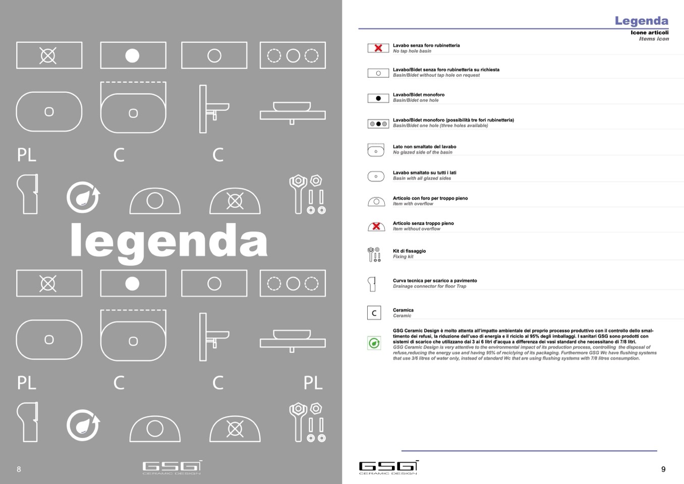 timento dei refusi, la riduzione dell’uso di energia e il riciclo al 95% degli imballaggi. I sanitari GSG sono prodotti con