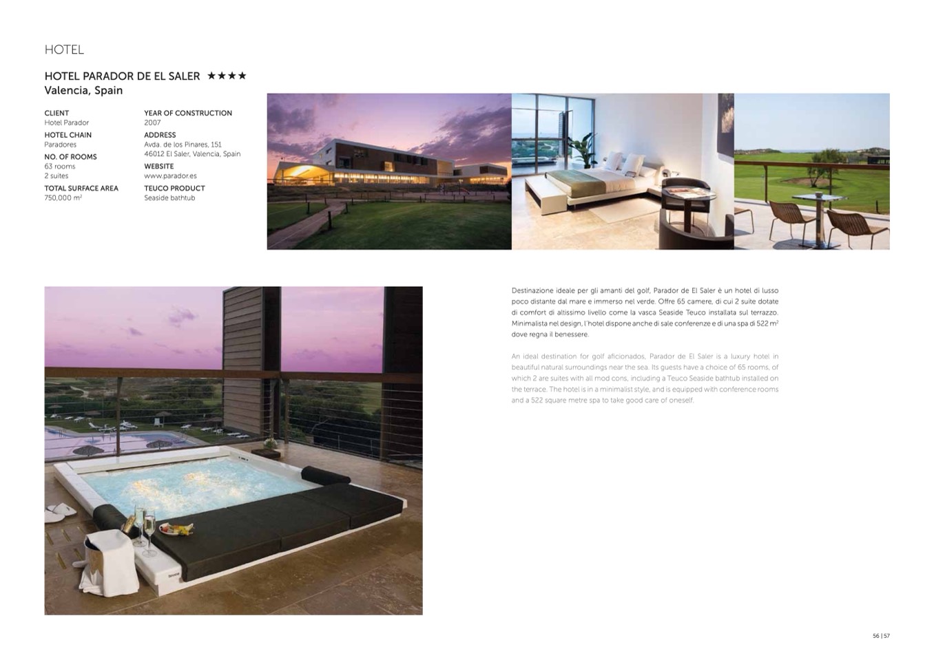 Minimalista nel design, l’hotel dispone anche di sale conferenze e di una spa di 522 m