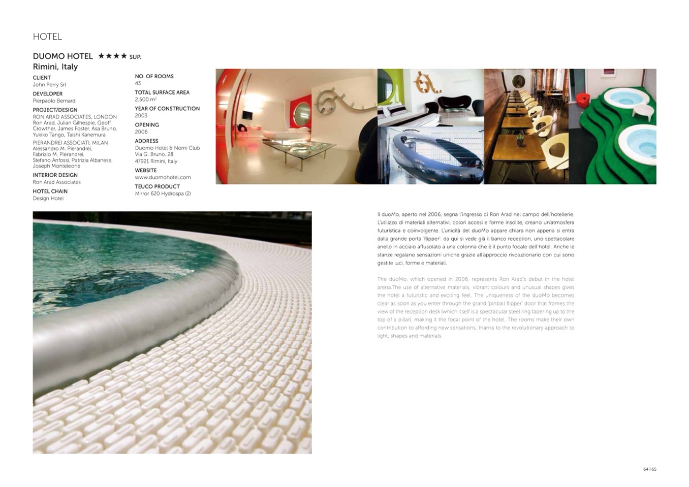 The duoMo, which opened in 2006, represents Ron Arad’s debut in the hotel