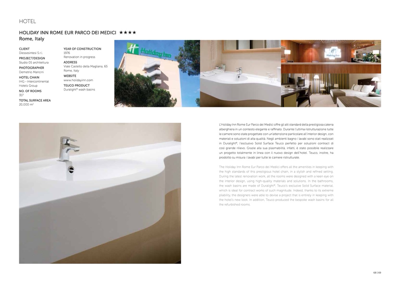 the hotel’s new look. In addition, Teuco produced the bespoke wash basins for all