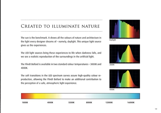 The Flindt Bollard is available in two standard colour temperatures – 3000K and
