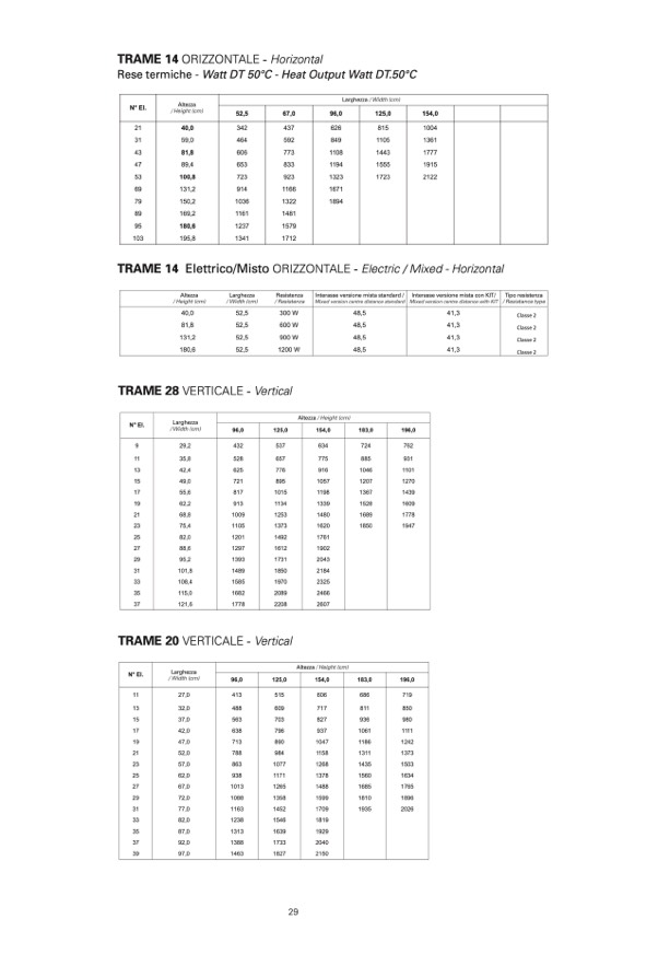 Rese termiche - Watt DT 50°C - Heat Output Watt DT.50°C