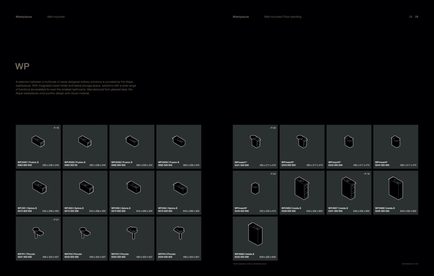 * Shelf available in white or anthracite brown