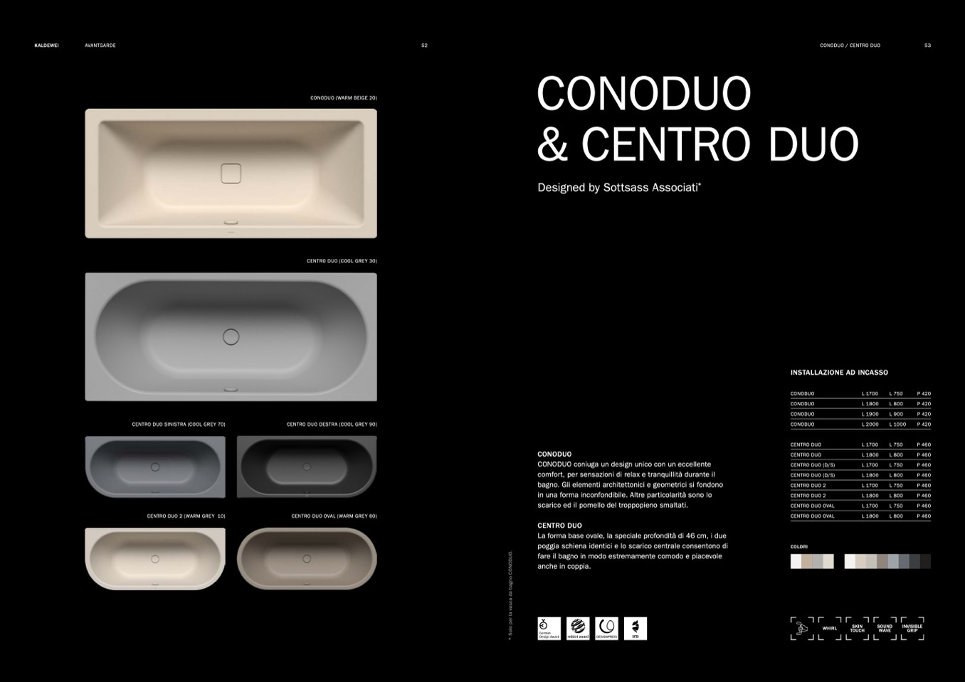 La forma base ovale, la speciale profondità di 46 cm, i due