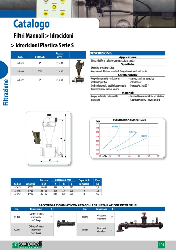 Filtro ad effetto ciclonico per separazione sabbia