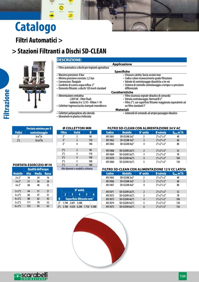 • Filtro 2”L con superficie filtrante maggiorata equivalente ad
