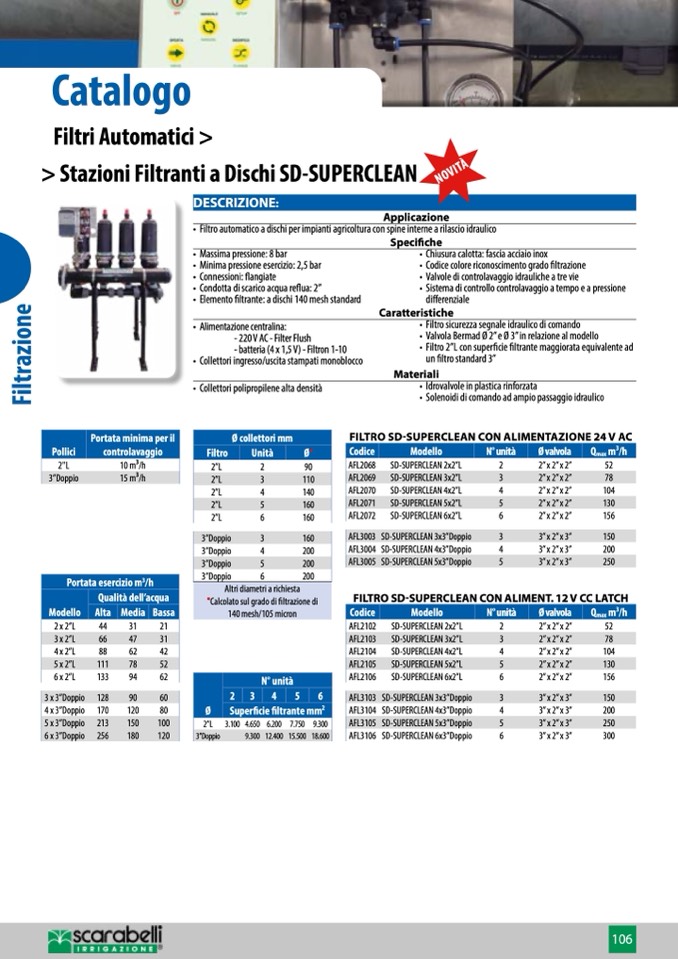 • Filtro automatico a dischi per impianti agricoltura con spine interne a rilascio idraulico