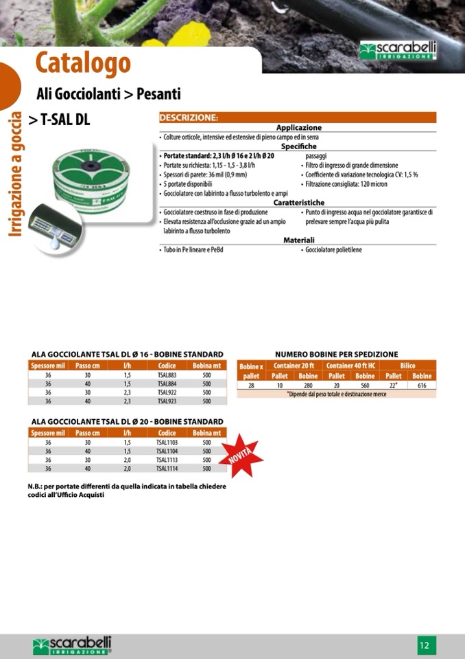 • Gocciolatore con labirinto a flusso turbolento e ampi