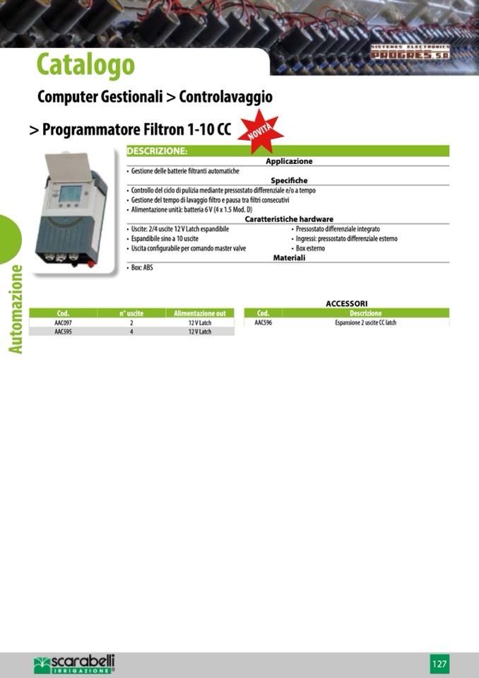 • Uscita configurabile per comando master valve