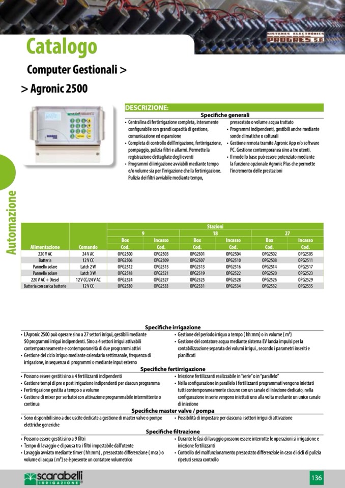 • L’Agronic 2500 può operare sino a 27 settori irrigui, gestibili mediante