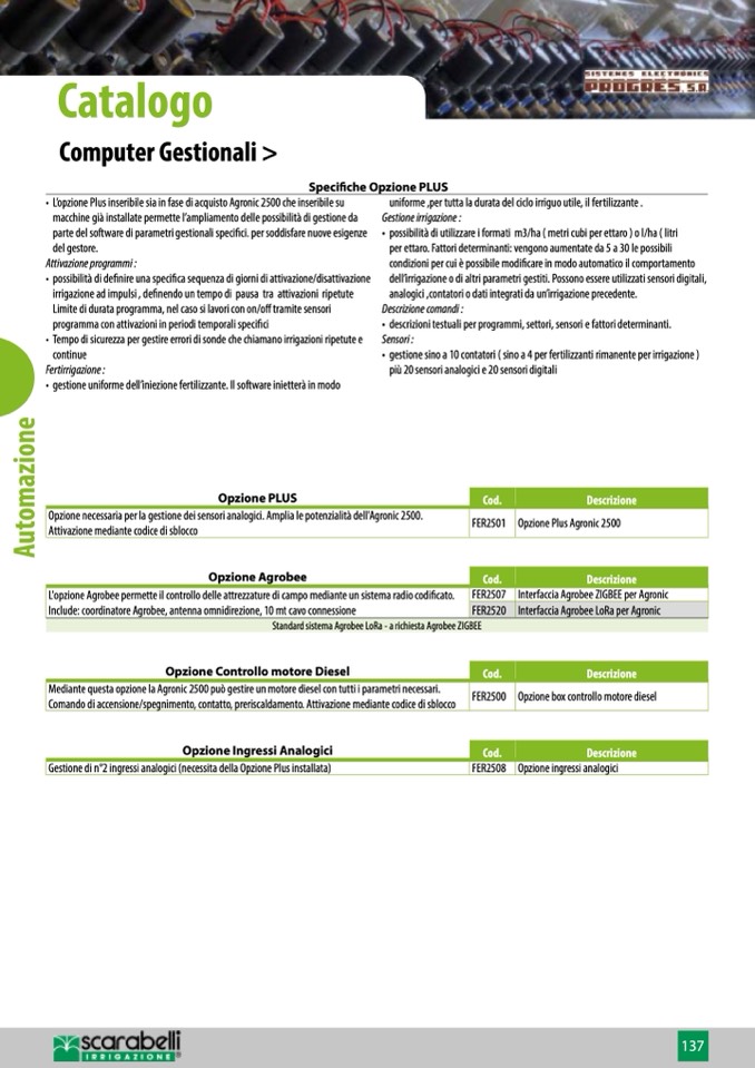 • L’opzione Plus inseribile sia in fase di acquisto Agronic 2500 che inseribile su