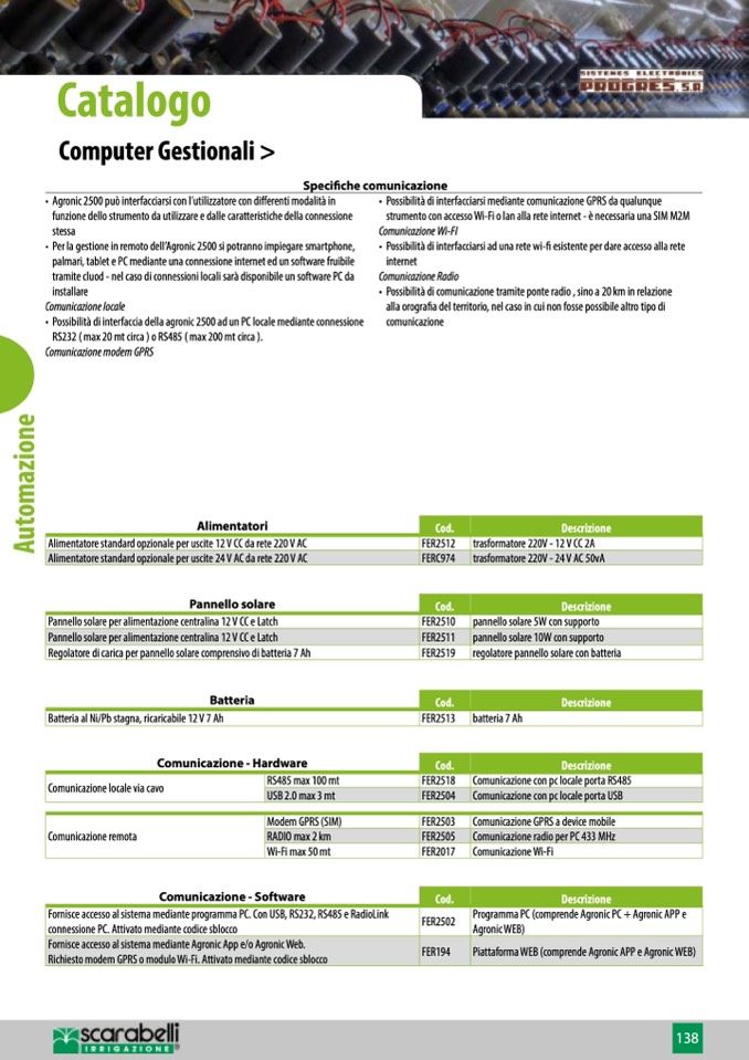 • Per la gestione in remoto dell’Agronic 2500 si potranno impiegare smartphone,