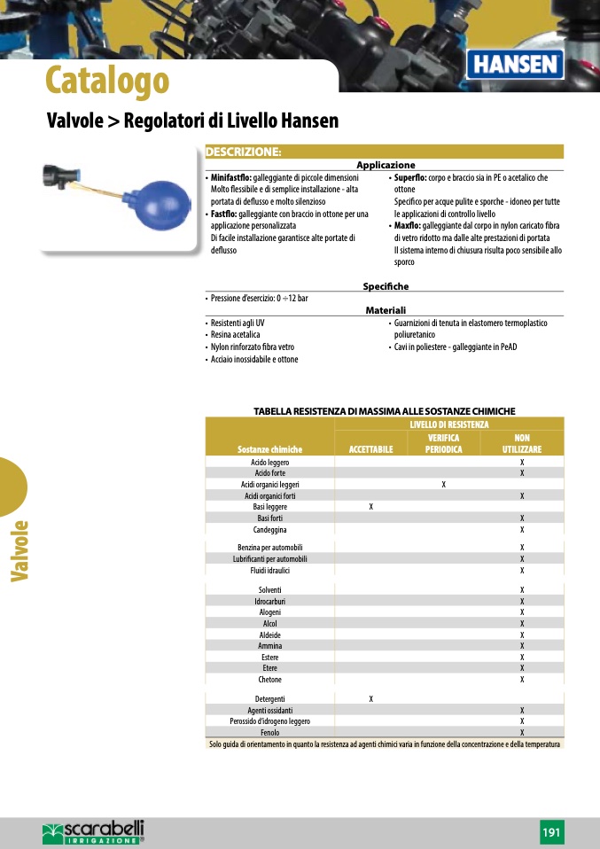 Solo guida di orientamento in quanto la resistenza ad agenti chimici varia in funzione della concentrazione e della temperatura