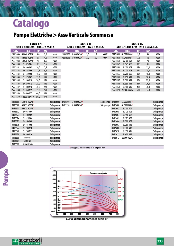 •Accoppiata con motore Ø 4” in bagno d’olio