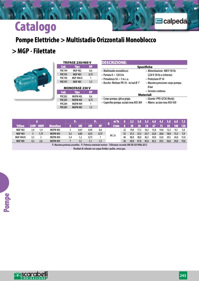 Prevalenza 56 ÷ 5 m.c.a.