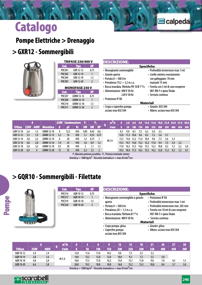 Prevalenza 20 ÷ 1,5 m.c.a.
