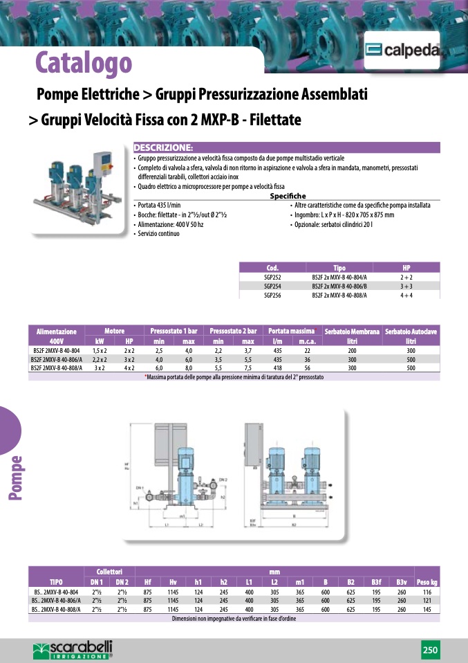 • Altre caratteristiche come da specifiche pompa installata