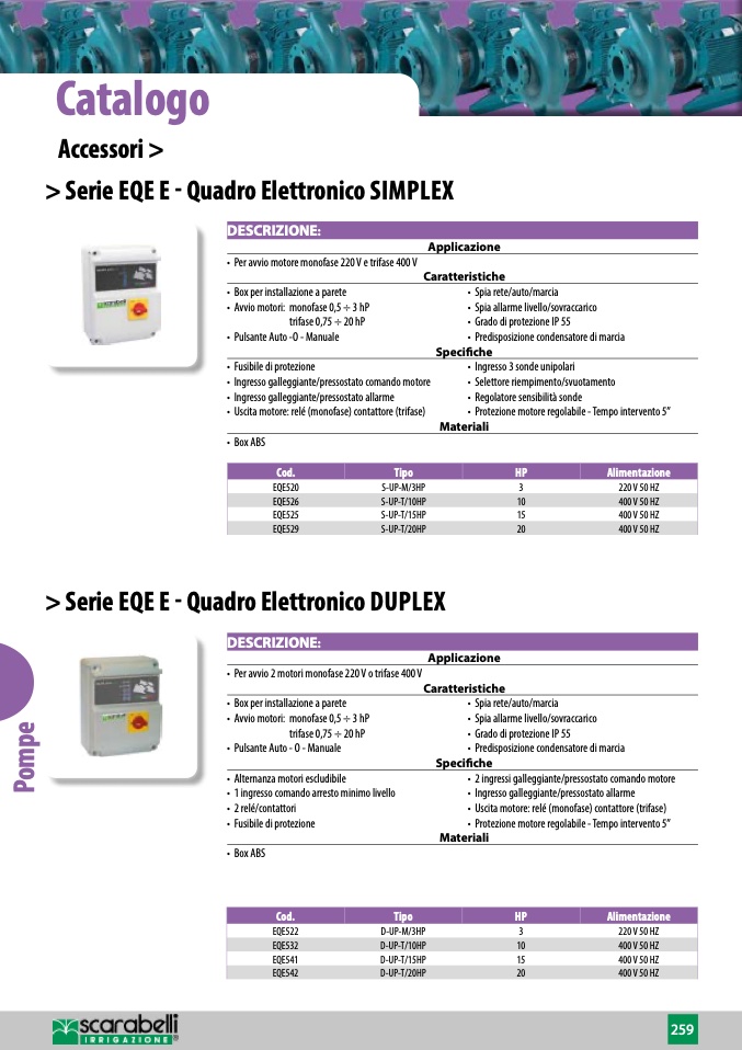• Avvio motori: monofase 0,5 ÷ 3 hP