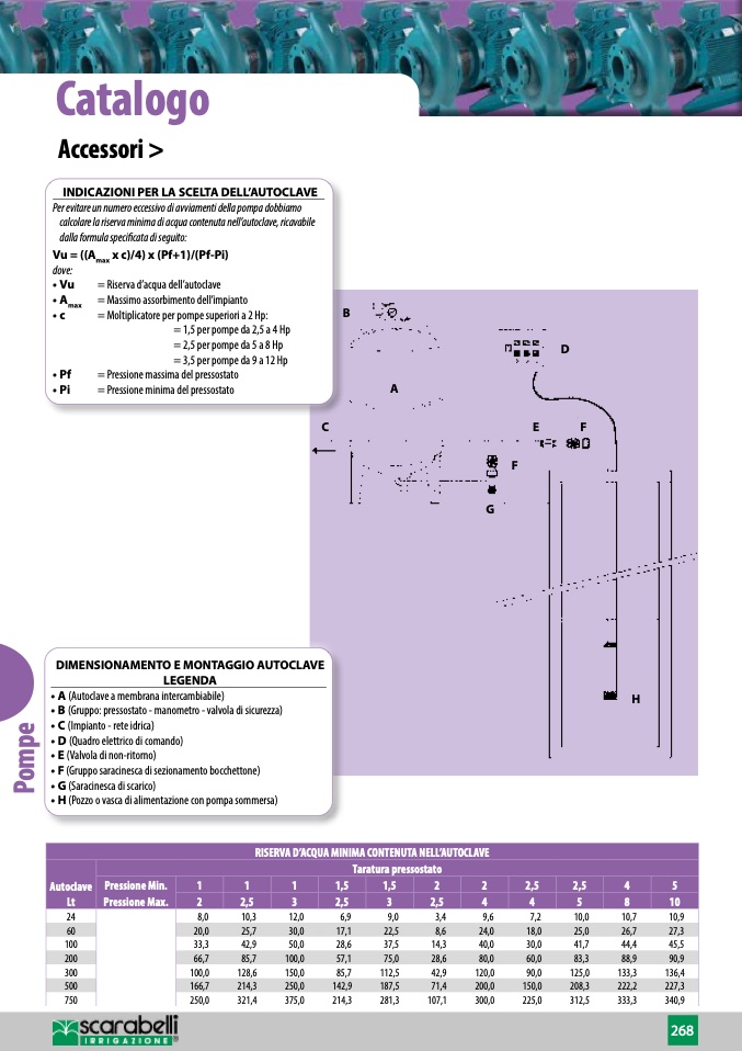 calcolare la riserva minima di acqua contenuta nell’autoclave, ricavabile