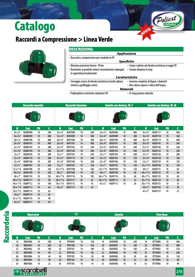 • Resistente ai prodotti chimici normalmente impiegati • Tenuta idraulica O-ring