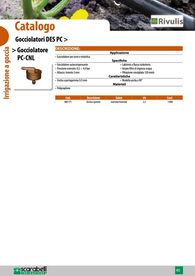 • Gocciolatore per serre e vivaistica