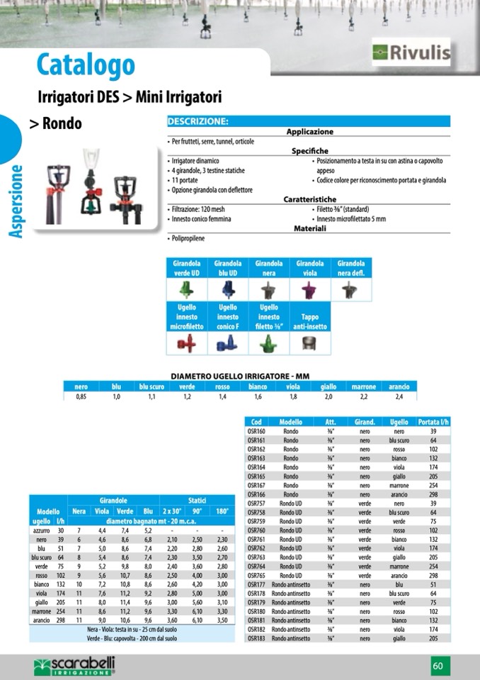 • Codice colore per riconoscimento portata e girandola