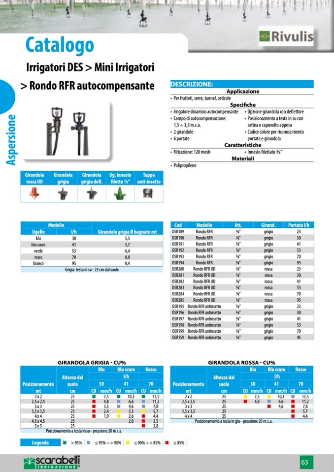Posizionamento a testa in su - pressione 20 m.c.a.