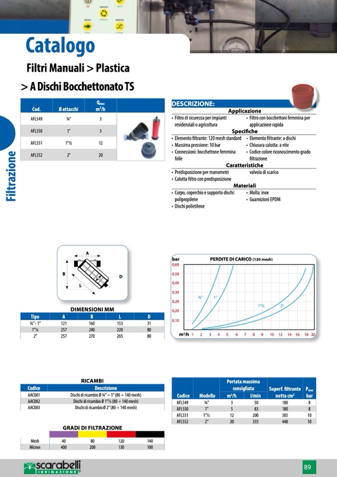 • Elemento filtrante: 120 mesh standard