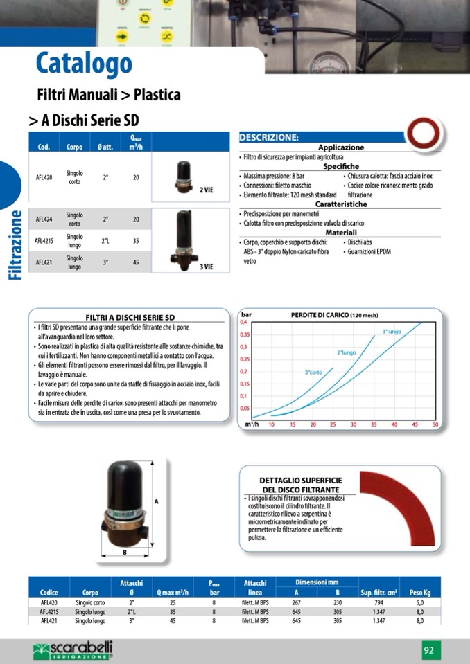 • I filtri SD presentano una grande superficie filtrante che li pone