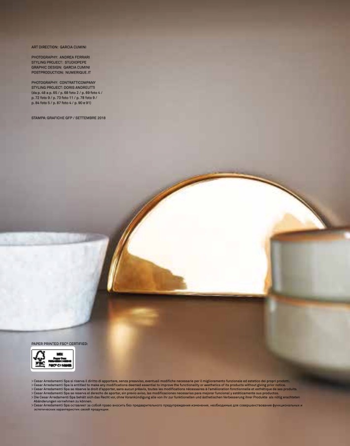 > Cesar Arredamenti Spa is entitled to make any modifications deemed essential to improve the functionality or aesthetics of its products without giving prior notice.