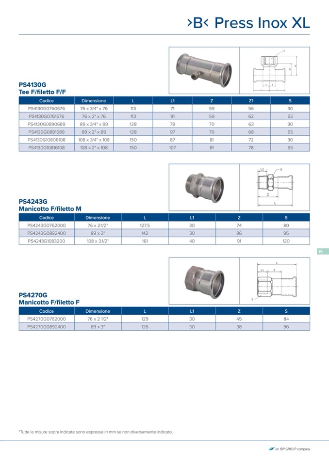 *Tutte le misure sopra indicate sono espresse in mm se non diversamente indicato.