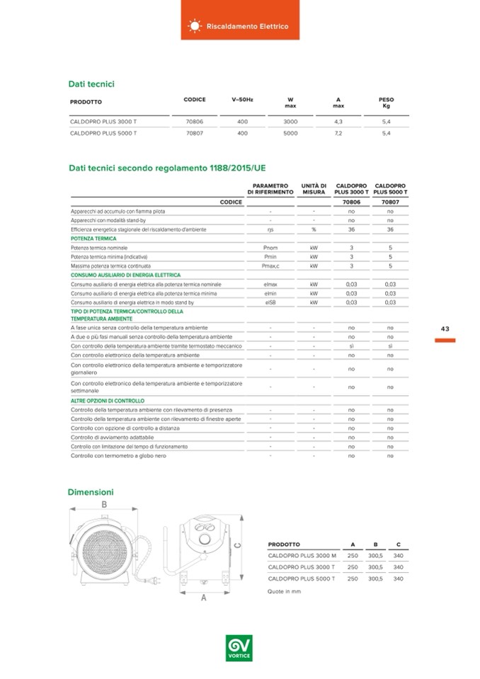 Consumo ausiliario di energia elettrica alla potenza termica nominale