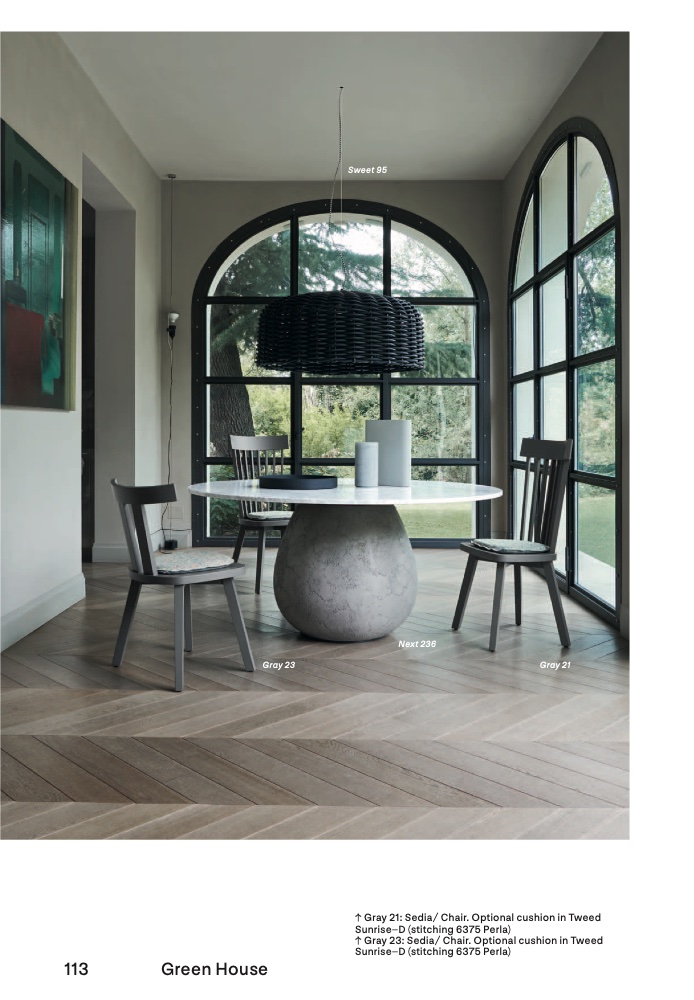 ↑ Gray 21: Sedia/ Chair. Optional cushion in Tweed