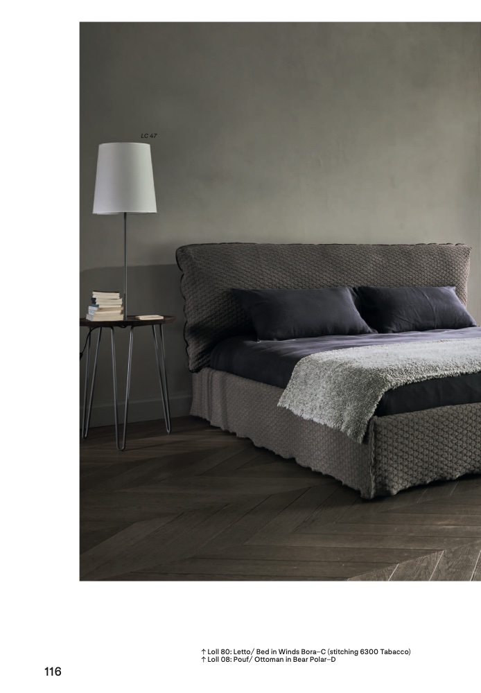 ↑ Loll 80: Letto/ Bed in Winds Bora–C (stitching 6300 Tabacco)