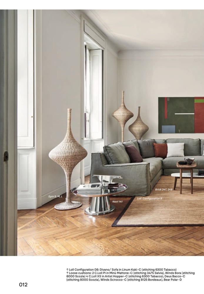 ↑ Loose cushions: 2 C.Loll PI in Minù Mattone–C (stitching 3475 Salvia), Winds Bora (stitching
