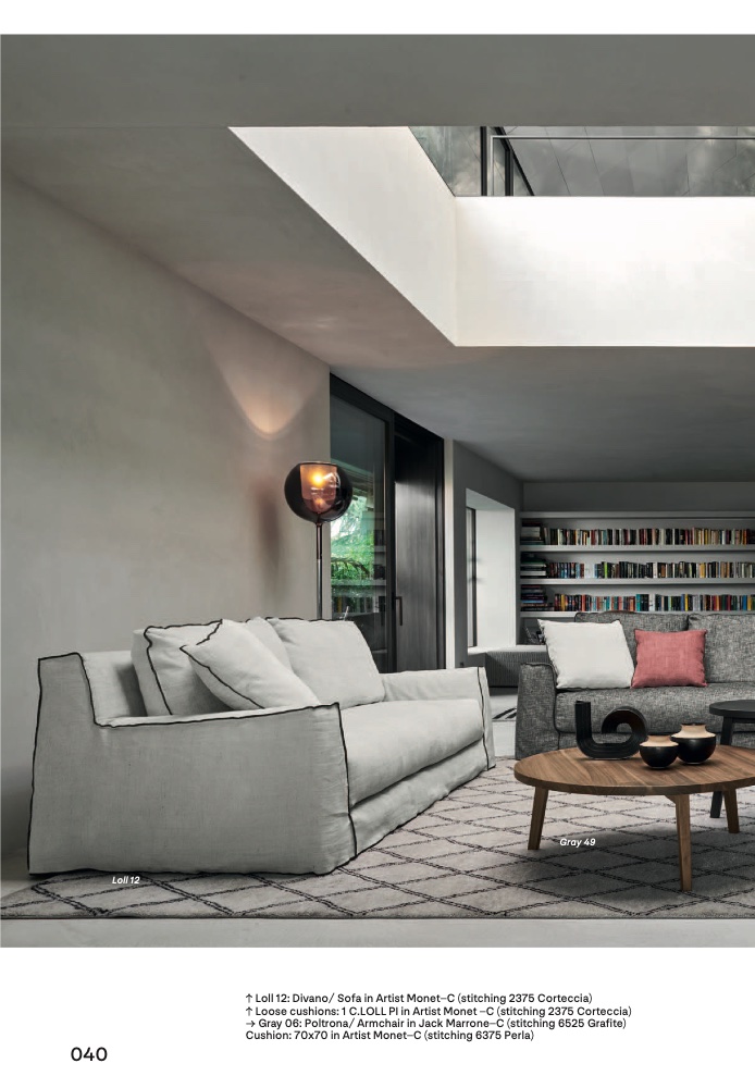 ↑ Loll 12: Divano/ Sofa in Artist Monet–C (stitching 2375 Corteccia)
