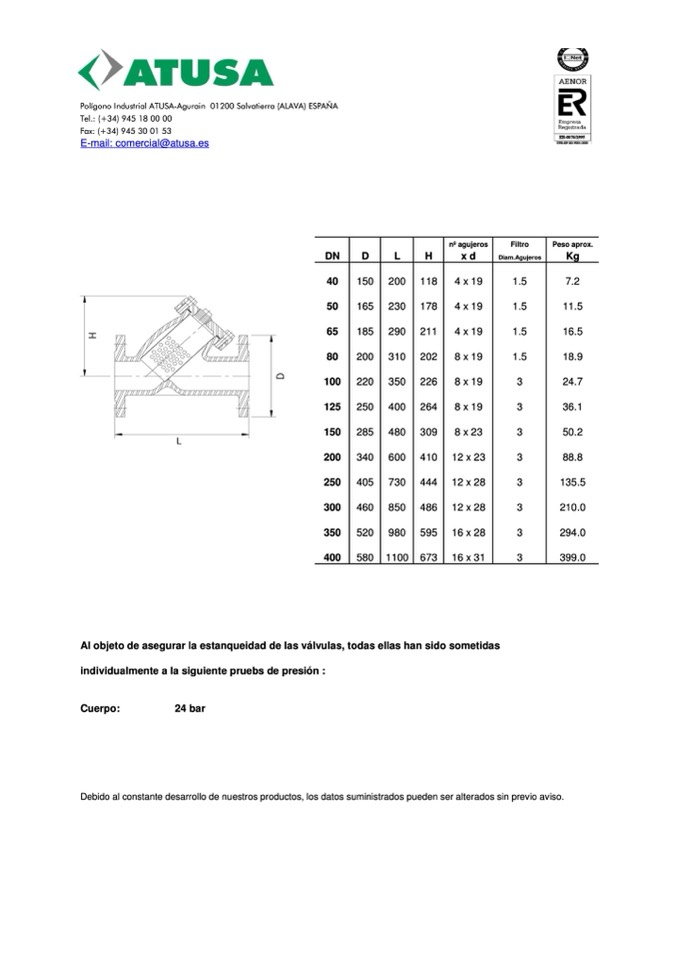 Al objeto de asegurar la estanqueidad de las válvulas, todas ellas han sido sometidas