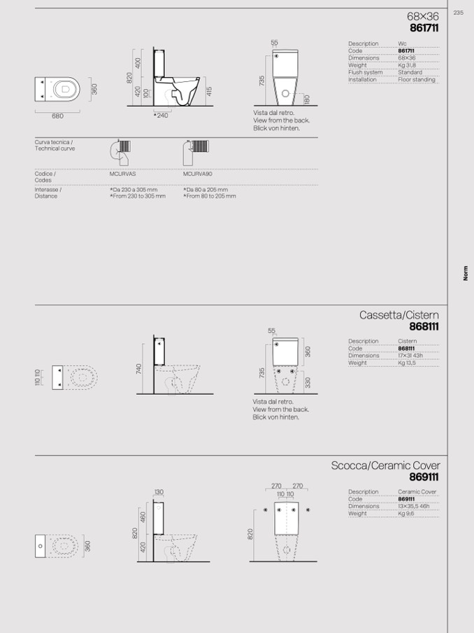 *Da 230 a 305 mm