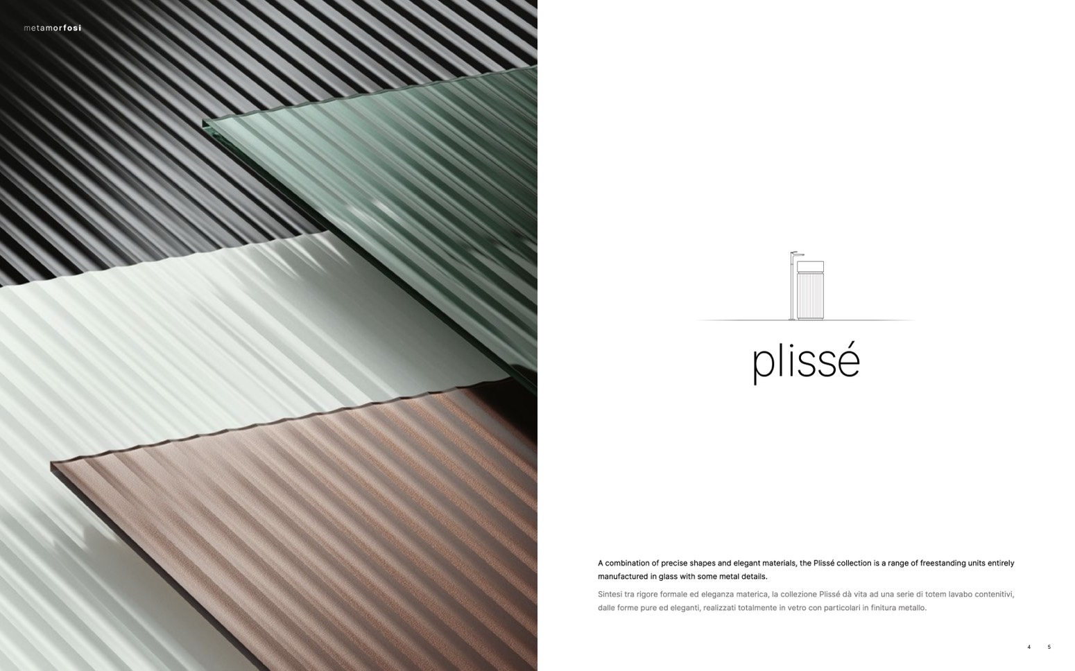 A combination of precise shapes and elegant materials, the Plissé collection is a range of freestanding units entirely