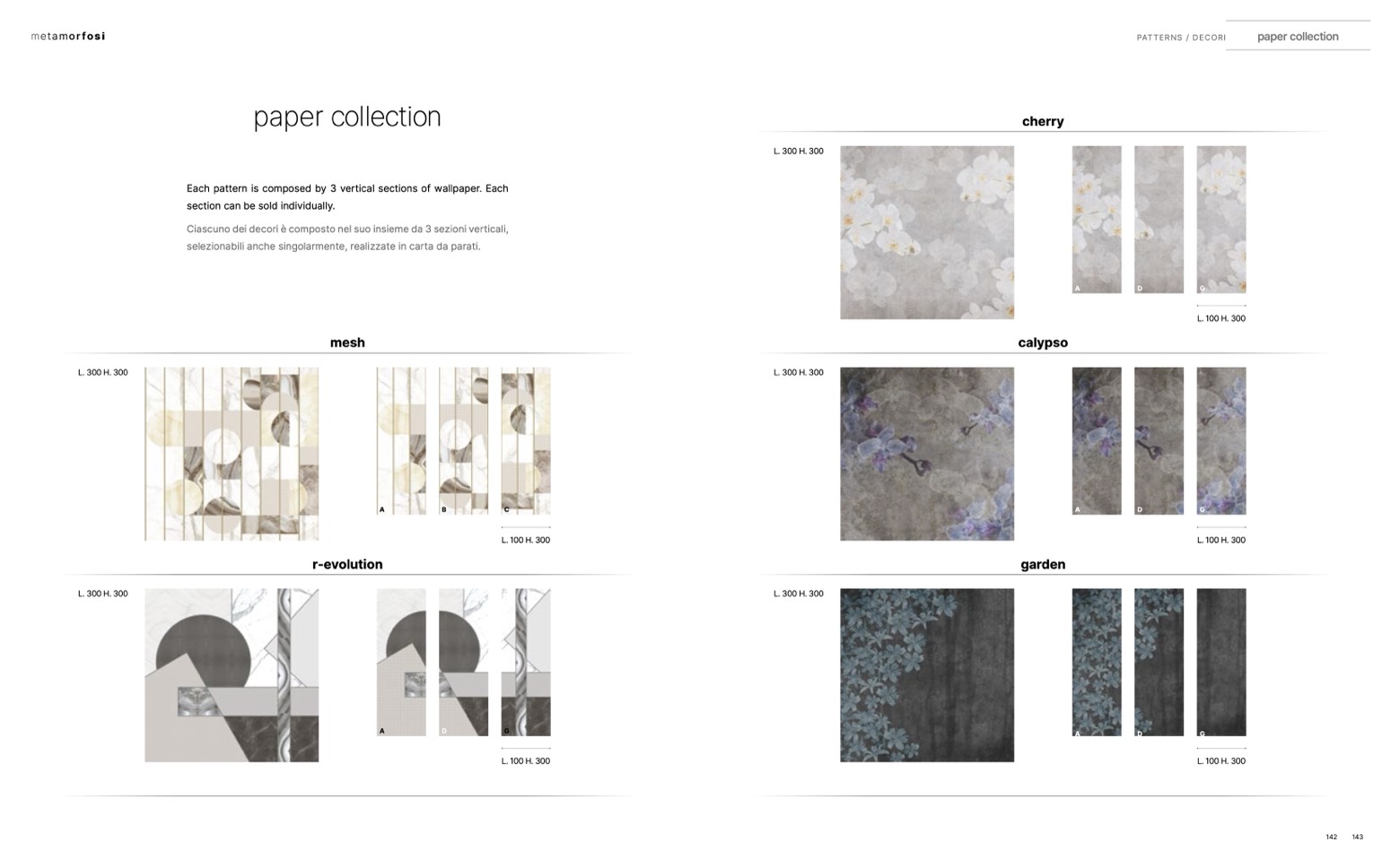 selezionabili anche singolarmente, realizzate in carta da parati.