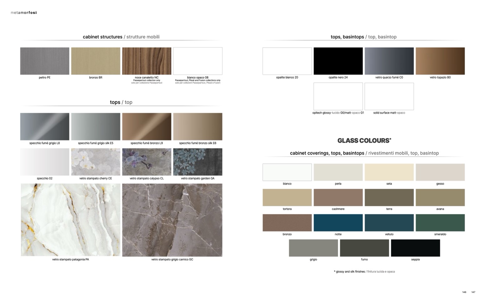 * glossy and silk finishes / finitura lucida e opaca