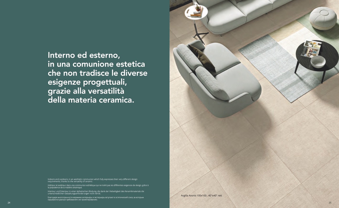 Interieur und Exterieur in einer ästhetischen Bindung, die dank der Vielseitigkeit des Keramikmaterials die