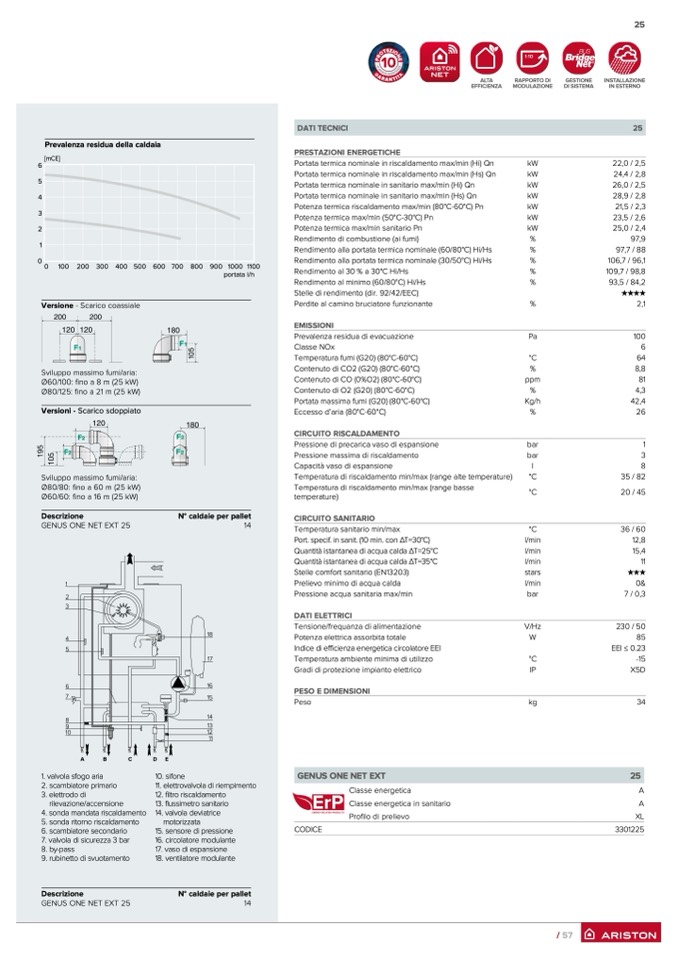 Rendimento alla portata termica nominale (60/80°C) Hi/Hs