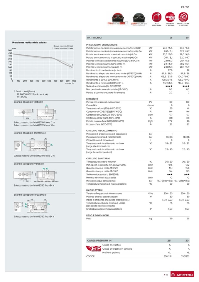 Sviluppo massimo fumi/aria Ø80/80: fino a 84 m