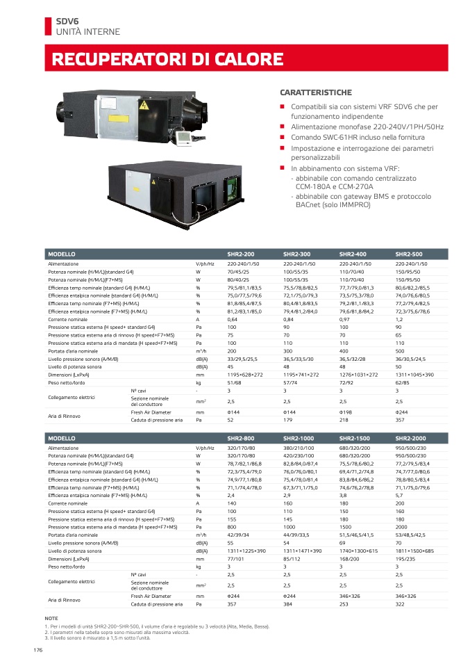 1. Per i modelli di unità SHR2-200~SHR-500, il volume d’aria è regolabile su 3 velocità (Alta, Media, Bassa).