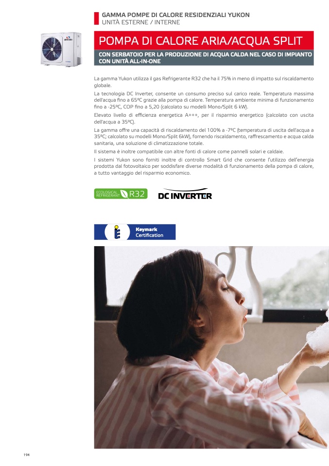 35°C; calcolato su modelli Mono/Split 6kW), fornendo riscaldamento, ra