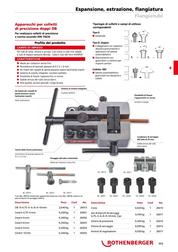 Il set (No. 26013) comprende: apparecchio base con cono (No. 26010), inserti e un