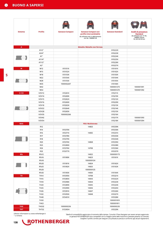 ganasce ROTHENBERGER sono compatibili con la maggior parte delle macchine a pressare presenti sul mercato.