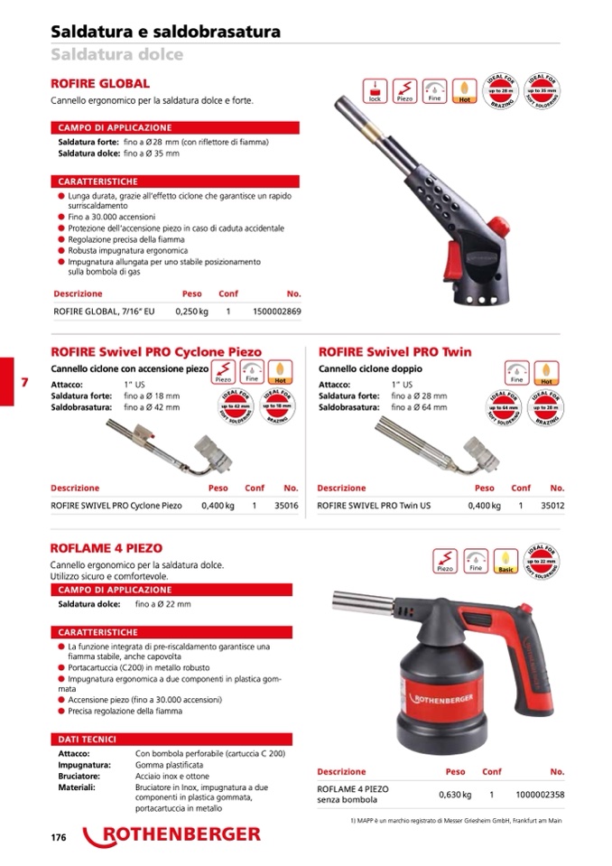 1) MAPP è un marchio registrato di Messer Griesheim GmbH, Frankfurt am Main